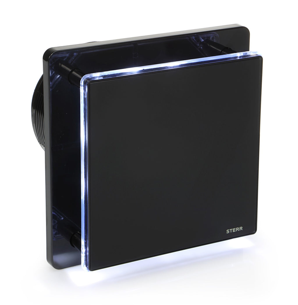 BFS125LH-B – Quiet bathroom fan with LED lighting and humidity sensor providing automatic ventilation control with decorative ambiance for bathrooms and toilets.