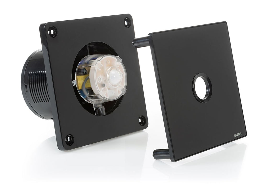 BFS100P-B – Quiet bathroom fan with PIR motion sensor providing automatic ventilation activation for bathrooms and toilets.