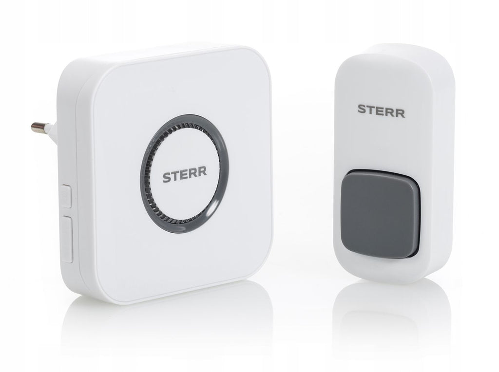DBX100 – Battery-free wireless doorbell with modern design and Kinetic Technology, featuring wireless range up to 150 m and 52 selectable ringtones.