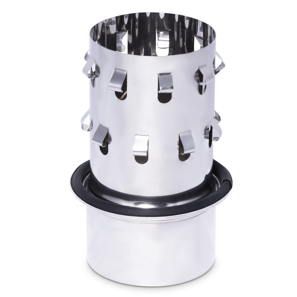 TCA160 – Adapter for connecting CWL rotating chimney caps to ceramic flue systems. Made from high-quality stainless steel (grade 1.4404, thickness 0.6 mm) ensuring durability and weather resistance. Designed for secure installation and optimal chimney performance.